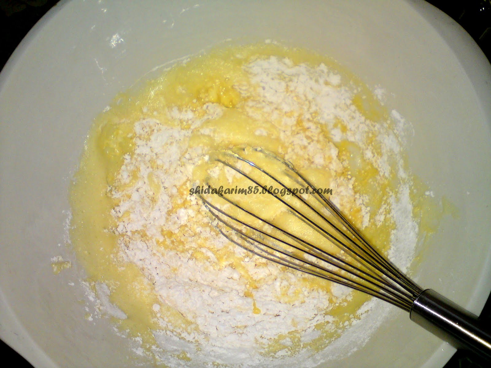 masukkan secawan tepung gandum dan 2 sudu besar soda bikarbonat
